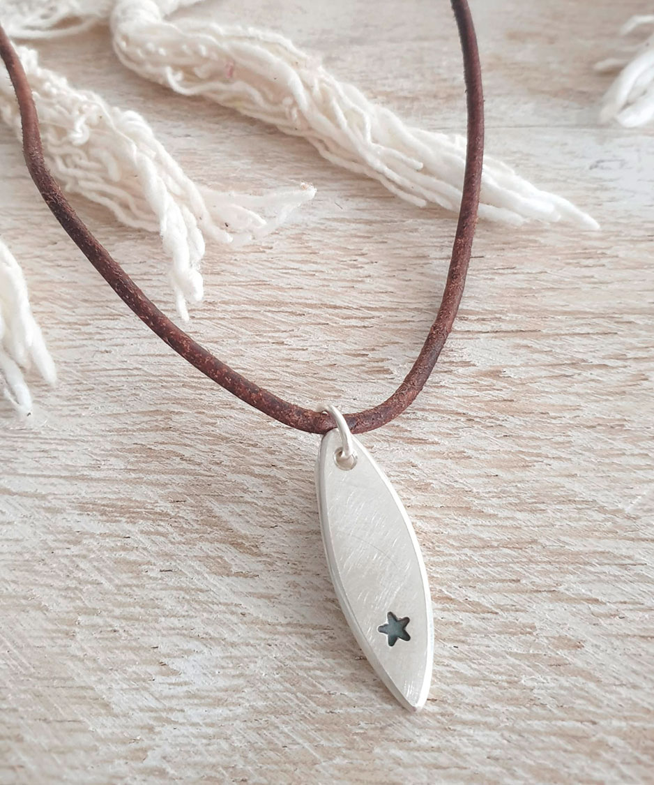 Anhänger in Surfboard-Form mit dem Sujet «Kleiner Stern» an Lederband